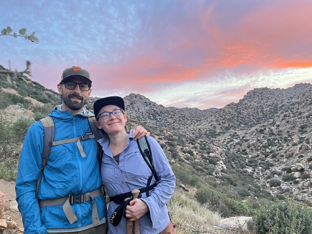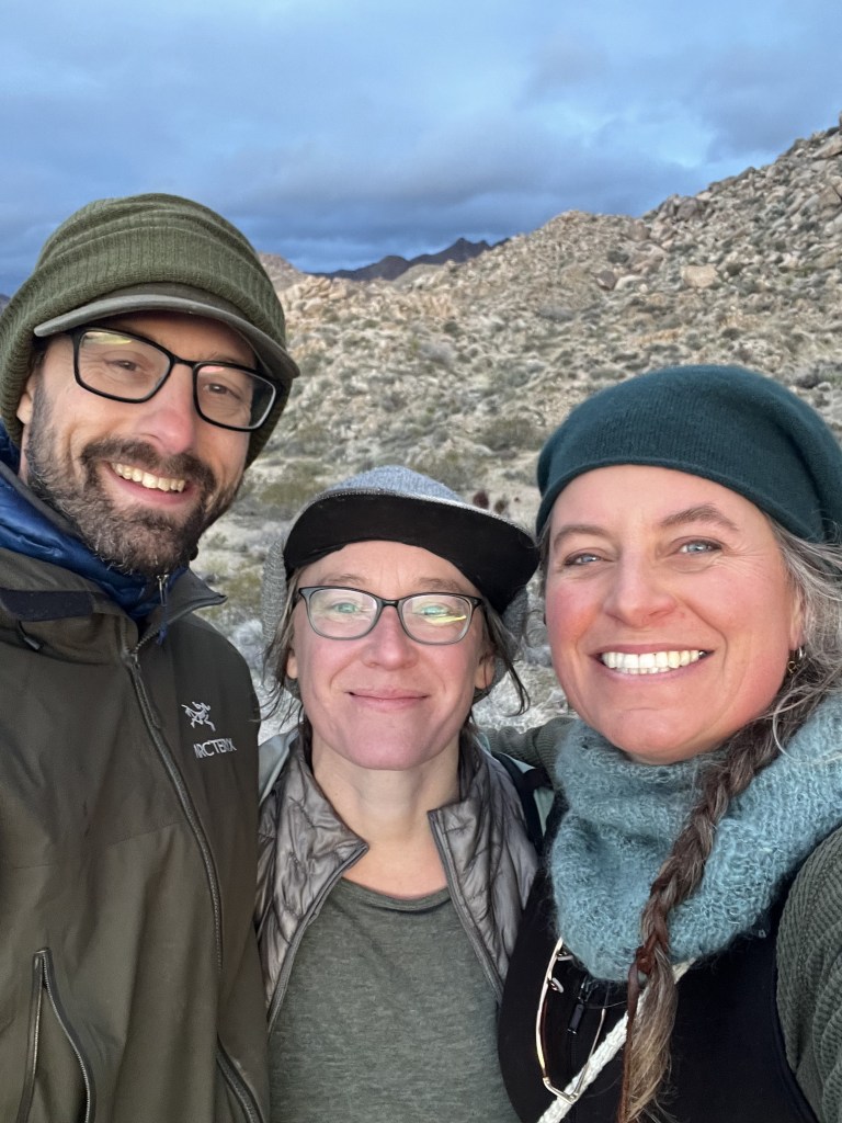 After taking a couple hours to settle in, we headed out for a hike in the surrounding desert wilds of the Pioneertown Mountains Preserve. We saw the first running water we’d seen in a couple weeks and a few small waterfalls. This is a shortlived and special thing in this dry terrain and we stopped often to relish it with our desert dwelling friends. The hike took us to the top of a peak with beautiful 360 degree views. On the way down, we got another spectacular desert sunset.