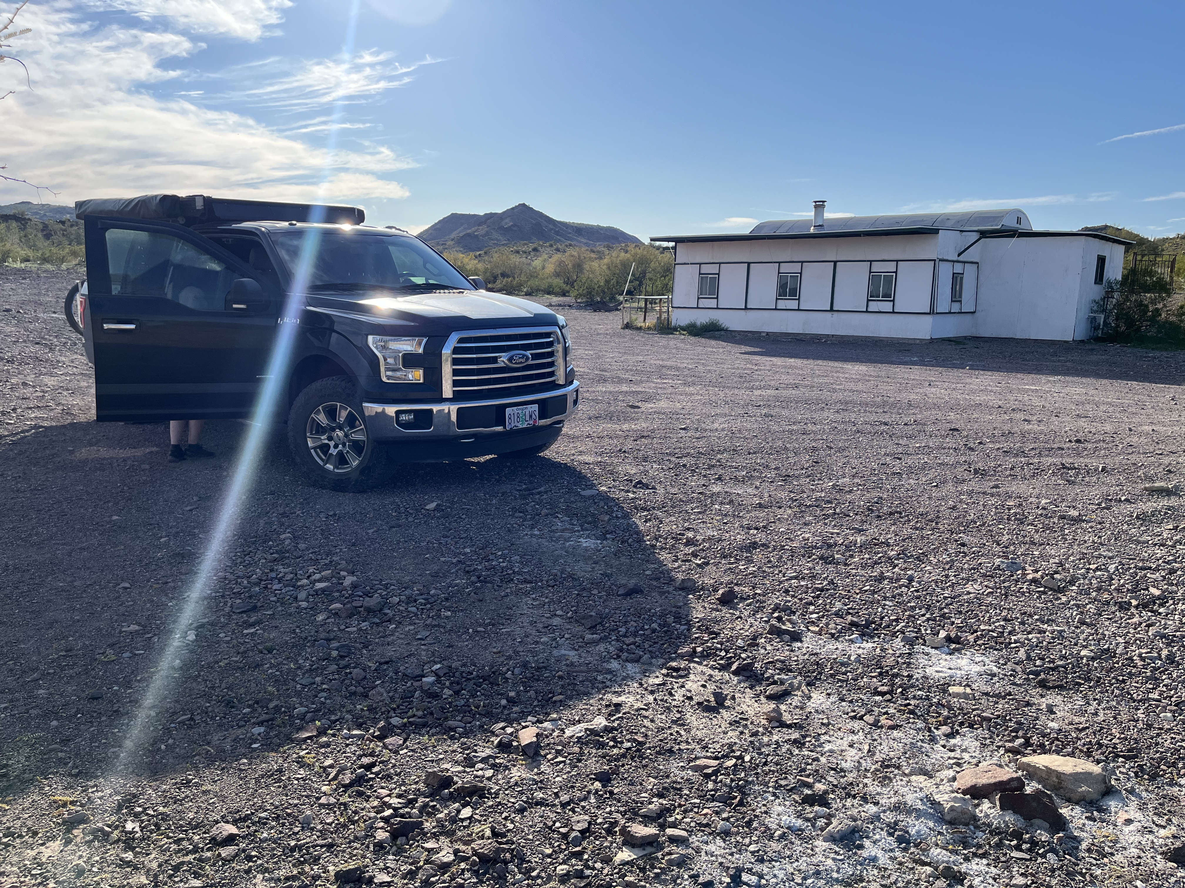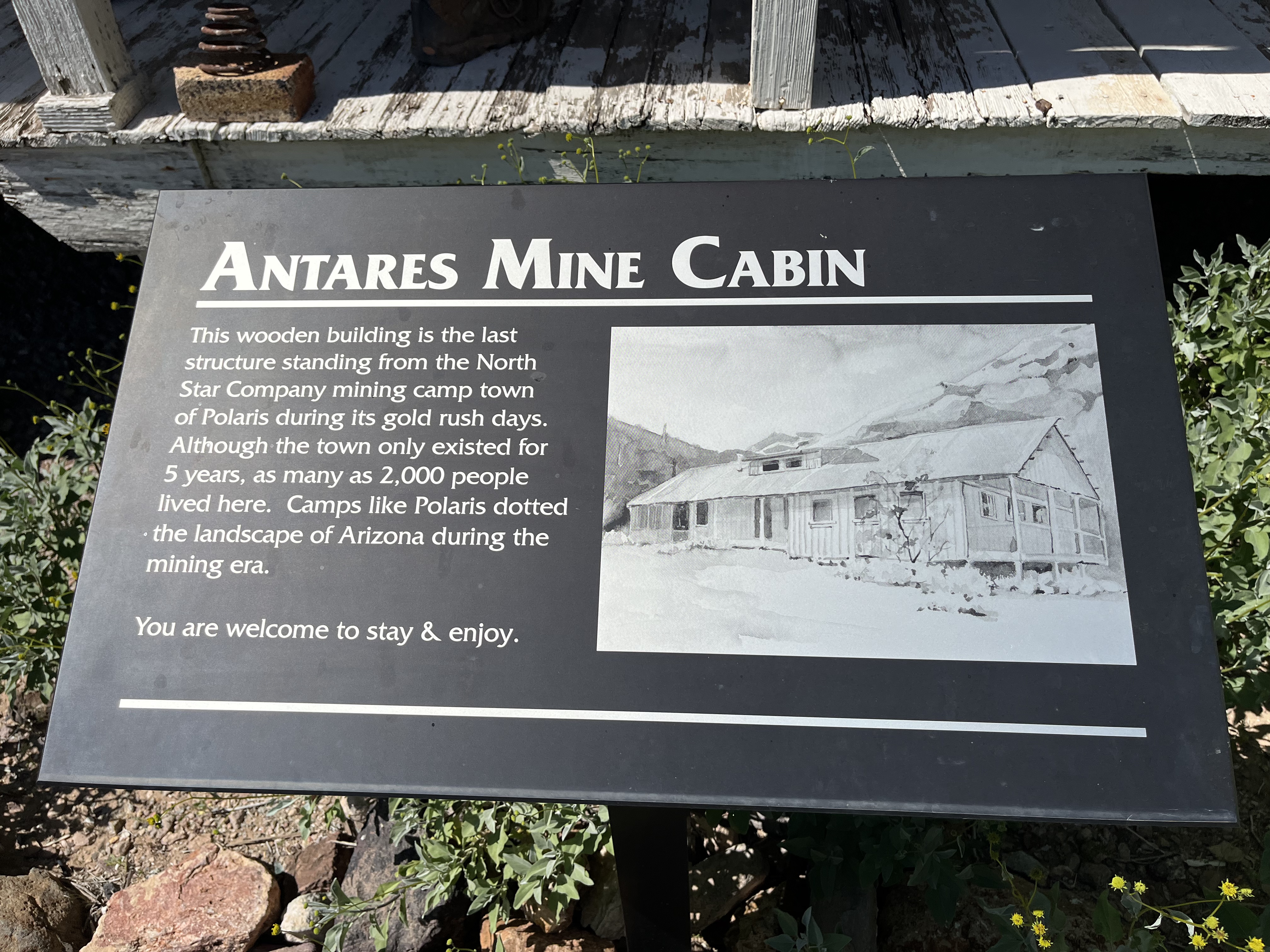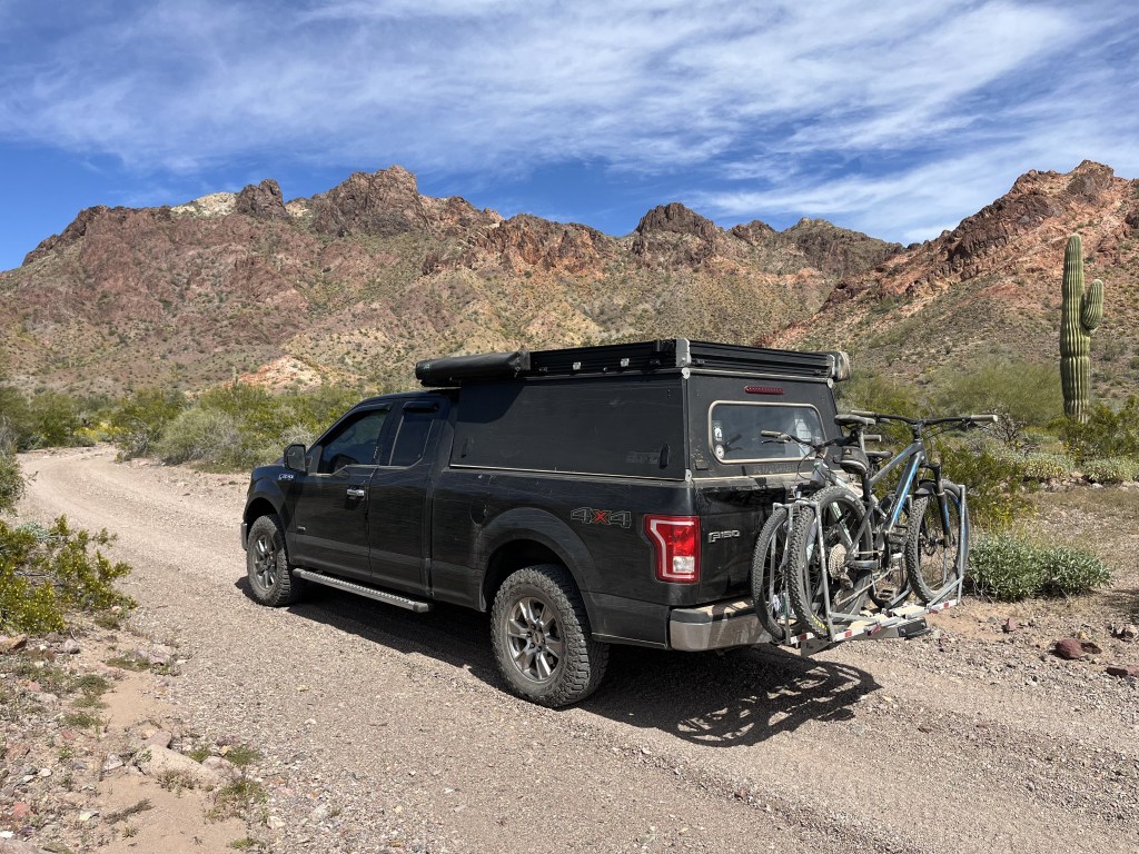 The first 15 miles or so up to the old mining ruins weren’t too bad. A few wash crossings, a bit of washboard, nothing too bad. We made our way to the old Antares mine that had a cabin still standing that we explored a bit. Sitting on the porch were two guys with serious hard hats with serious headlamps on them. Their hobby was exploring old mines and they told us all about the dangerous and addictive nature of their pastime. They gave us some pointers on where to go if we wanted to explore this particular mine that only had a slight chance of falling through the floor. They didn’t make a great case for taking up the hobby. You can watch their adventures here on Youtube.