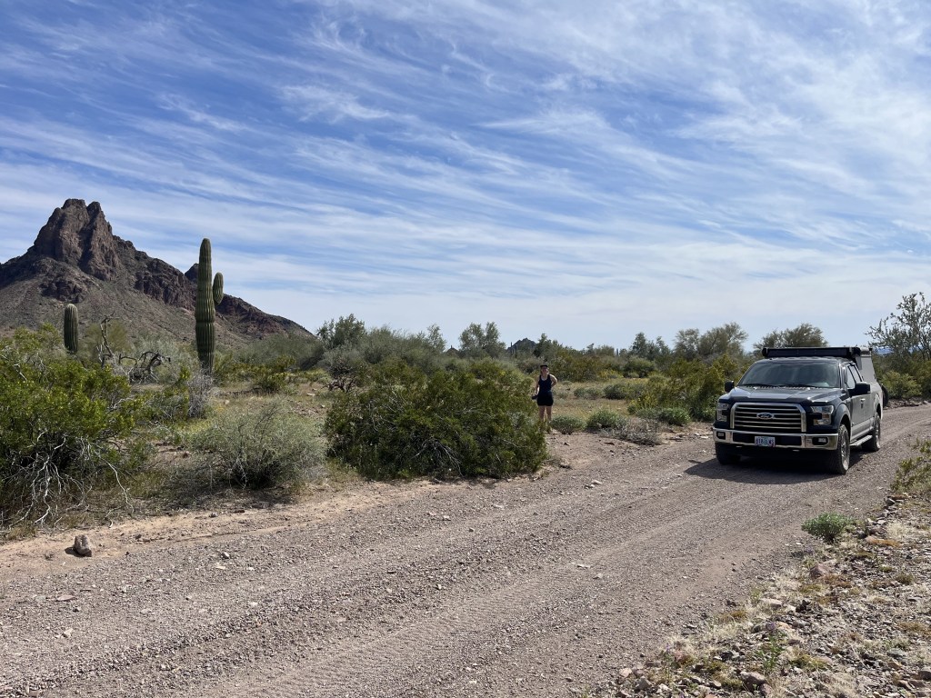 We stopped in the first town we came to called New Hope for gas and to dump our trash. We also made a hotel reservation in Gila Bend, which was about 1.5 hours more down the Interstate. We had a hankering for pizza so we stopped at a place in Buckeye called Argento’s Pizza and Wings. The pizza was cheap, delicious, and there was a lot of it, enough for two meals. If you’re ever in Buckeye, I highly recommend it. We got into Gila Bend about 9:30, checked into the hotel and went straight to bed. A long day, but a great way to start a week off of work.