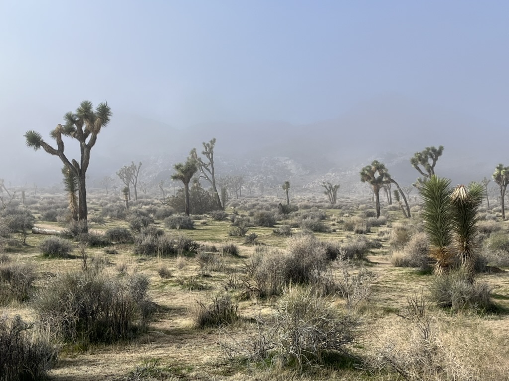 On our way out, we drove through Joshua Tree National Park getting the rare site of Joshua Trees in the fog. We did finally get some sunshine and a good hike and some bouldering in.