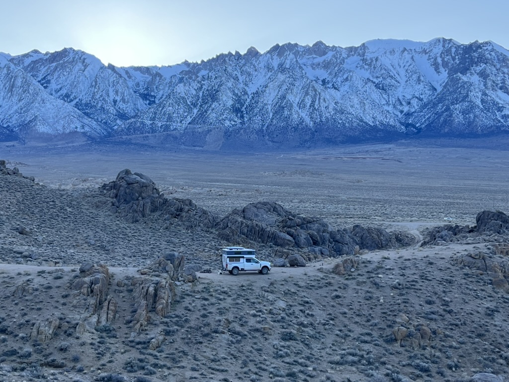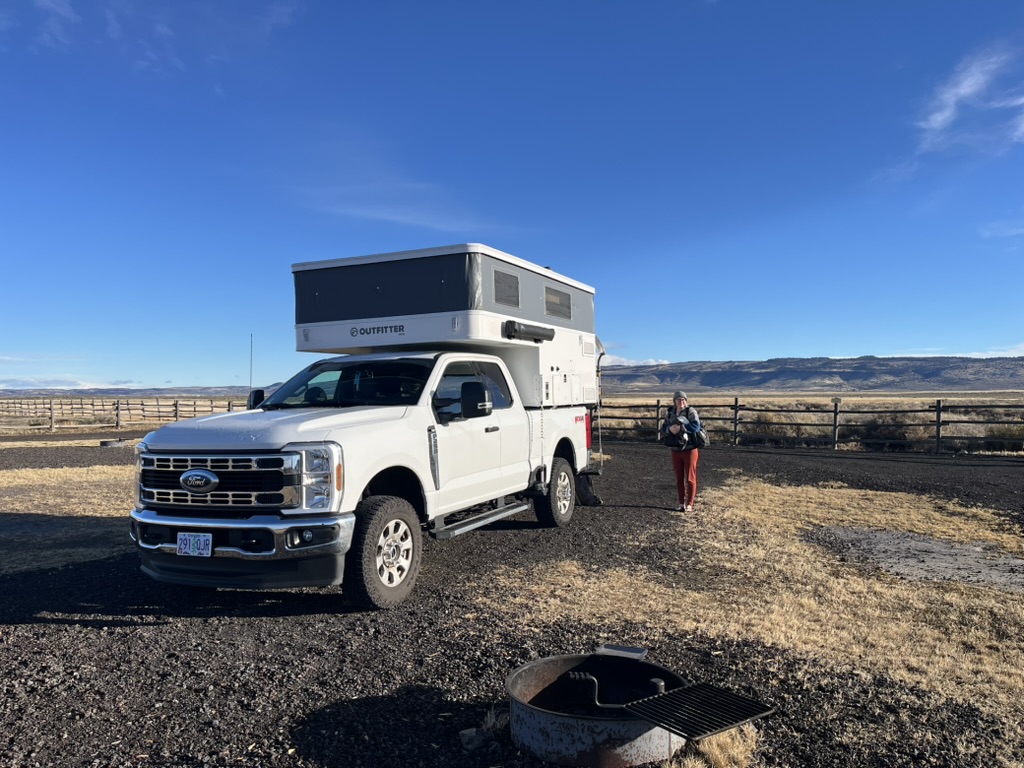 The first big update is that last spring we replaced our Go Fast Camper that we enjoyed for close to two years and used on our last big trip in 2024 with a slide-in pop-up camper from Outfitter Manufacturing in Colorado. The bigger, heavier camper also necessitated a truck upgrade to a 2024 Ford F-250. I’ll do another post with more details on the camper and why we chose Outfitter over all the competition. But, one of the things that our trip in 2024 taught us is that we needed a bit more space to be able to be comfortable on the road, particularly when weather is bad. We both work remotely, and we needed a place where we could both be comfortable inside when the weather wasn’t co-operating. The GFC simply wasn’t enough space for us to be comfortable both working inside. In addition to giving us much more space, we also have amenities like heat, a fridge, lots of battery capacity, an inverter, and a water system. The whole setup is also not much bigger than our previous one allowing to still get to the hidden and off the beaten track places we like to go. So far we’ve been really happy with it.