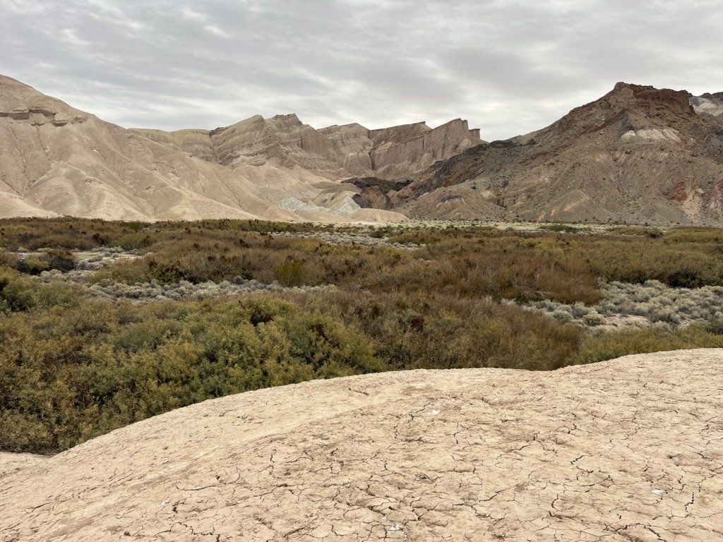 We drove into Death Valley the next day. We spent most of the day hiking on the Badlands loop trail. We started at Zabriskie Point, one of the more popular viewpoints in the park, beautiful but crowded. We followed the washes and canyons all the way to the Badwater road and back up Golden Canyon. It ended up being about 7 miles altogether and as usual in National Parks, just a few miles from the main trailheads the crowds diminished and we found some solitude among the multicolored soil and strange rock formations. Death Valley is indeed a geologic wonderland and beautiful in it’s way, but being just a few days removed from our verdant NW rainforest, the barrenness of it was a bit of a shock.
