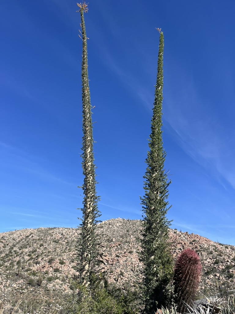 We left Kiki’s on Sunday morning and got back onto highway 5 heading South. Our destination was Bahia de Los Angeles where we intended to spend the work week. The highway left the coastline eventually and started climbing a bit into the central mountains. It was then that we got our first view of the cirio or Boojum Tree. We exclaimed with wonder and excitement at our first glimpses of the tall tapered trunks with short leaves making them look almost furry. A plant rivaling the Joshua Tree in its whimsical appearance, as if it had jumped straight from a Dr. Seuss book. It’s such moments that travel affords. It allows me to experience that kind of wonder and jaw-dropping excitement at seeing something so new and strange in this world even after having been on this planet for almost half a century.