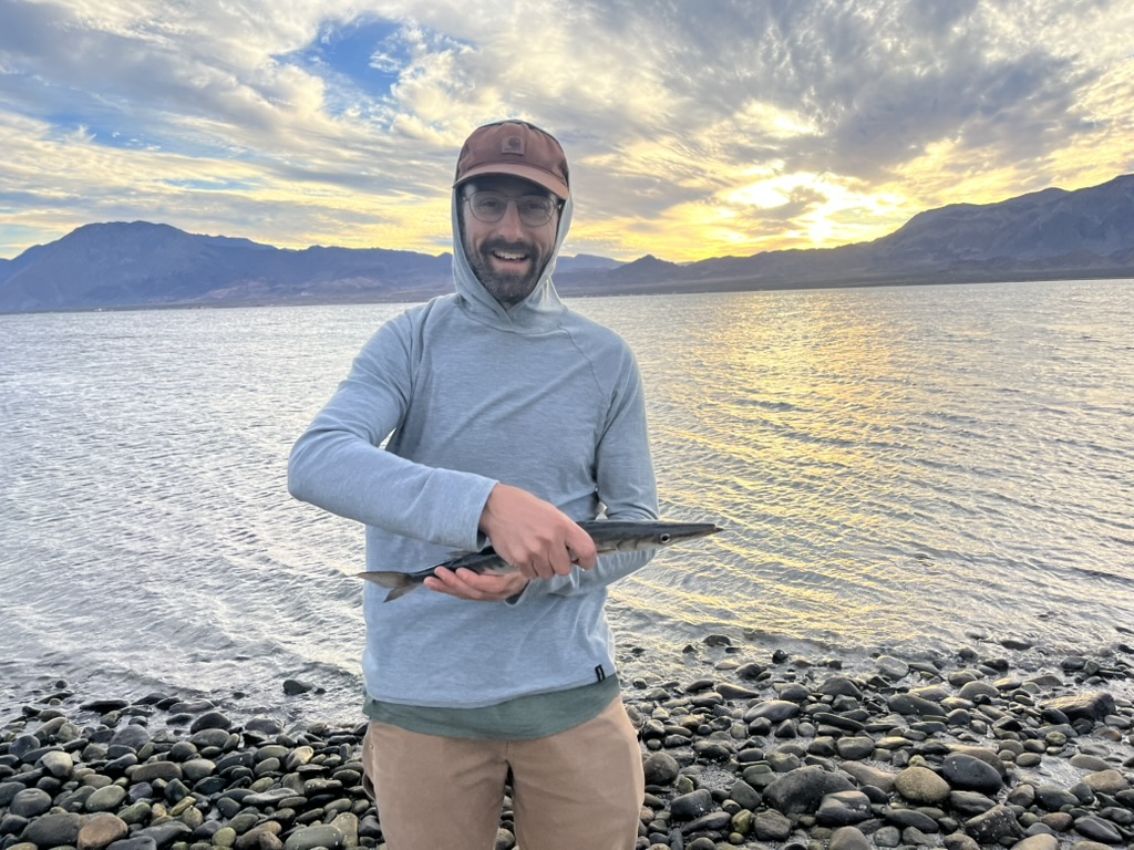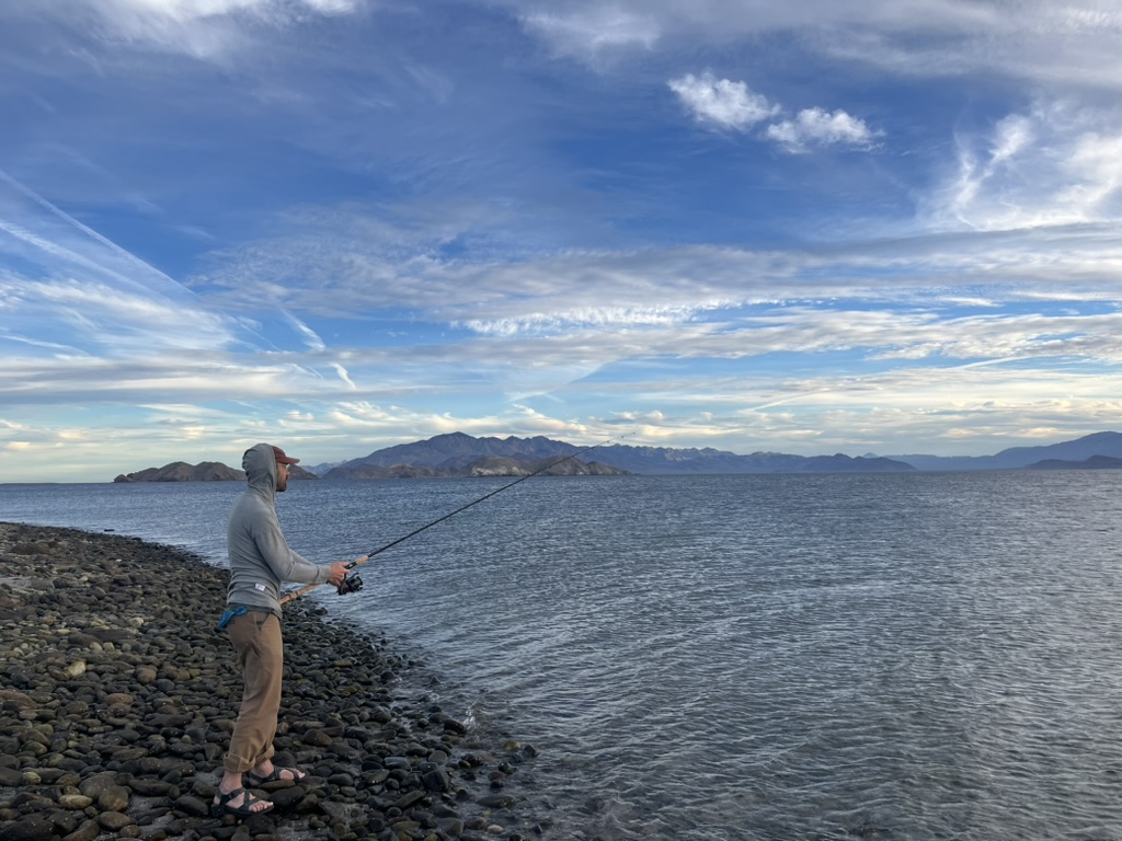 Once back in camp I got my fishing rod rigged up and headed out to try my luck. I saw Andy who I’d met the day before and showed him my setup asking if my lure was too big or too small, or completely wrong. I’d just grabbed a couple of lures from a Sportmen’s Warehouse based on some reading I had done and really had no idea if they were anywhere close to what’s needed. He told me it looked good and that the Krocodile spoon I had on there was similar to what they’d used to catch the halibut the day before. I walked down the beach from them a ways and threw my line in. Soon after, I had my first fish on and landed what I learned later from Andy was a barracuda. I caught another one in short order, but threw them both back not really knowing what they were. He also informed me thy were good eating just cut into steaks and grilled. Luckily I caught many more over the course of the next few days so we got to eat plenty of it. That first evening I ended up catching my own small halibut. It was the perfect size to steam in our Instant Pot, also a preparation suggestion from Andy, and we made our very own fish tacos. We ate fresh fish 3 of our 5 nights in Bahia de Los Angeles, all caught a few feet from the camper door. Absolutely spectacular fishing, even for a complete novice like me.