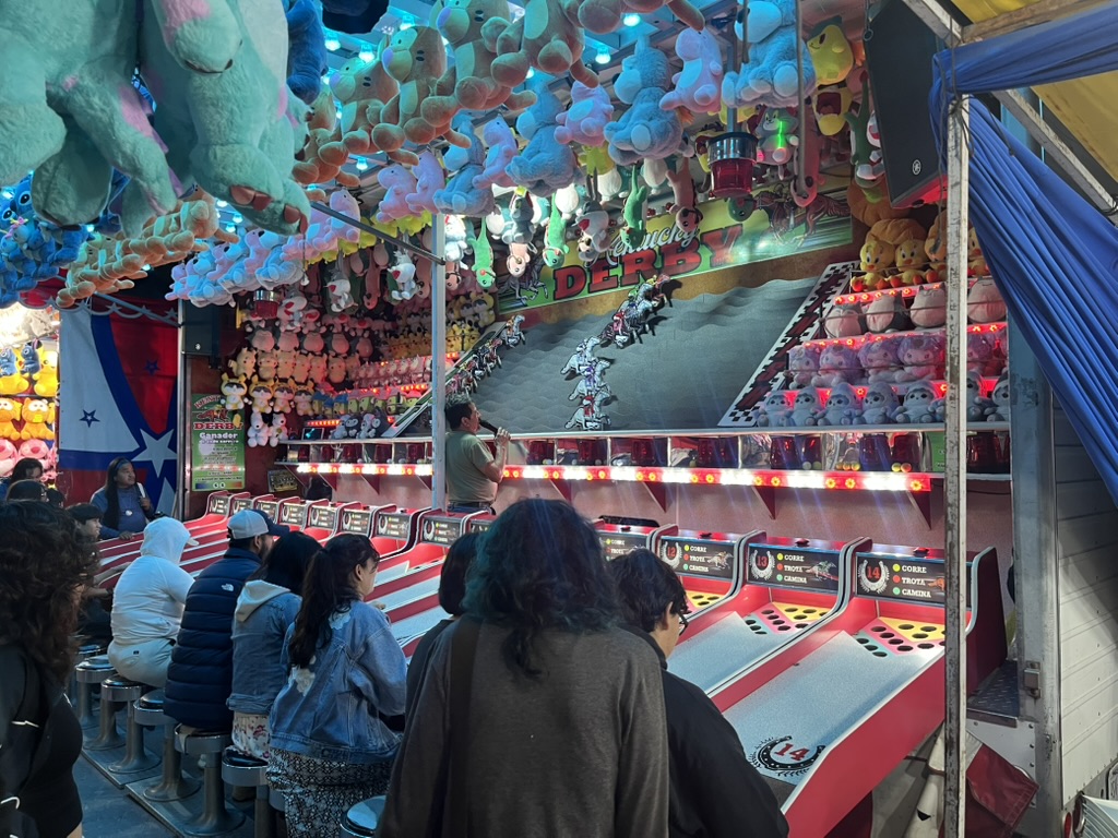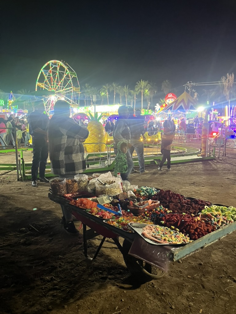 We headed to the festival grounds and went in. It was very much like what you might see at an American carnival with rides, games, and food, but with a Mexican twist of course. Churros instead of funnel cake for instance. There were however similarities like cotton candy and corn dogs. We started off with a “super burro”, which was more or less a burrito but freshly prepared on a grill top in front of us. We continued with a “vampiro taco”, which is a toasted, crunchy corn tortilla topped with melted cheese and beans. Jocelyn tried a dish called “papas mixta”, which was mashed potato with meat and melted cheese served with tortillas. After all that on top of the tostielotes, we didn’t have room for churros unfortunately.