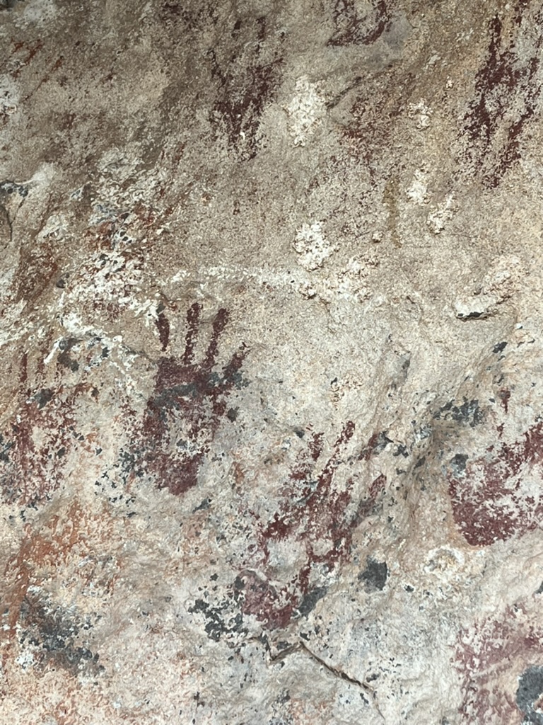 On our final Friday afternoon, we hiked up to a large cave up above our camp that we heard had some poictographs. It was a fairly short hike, but required some scrambling on steep, loose rock. The cave was a large two-room affair and the pictographs consisted of a dozen or so red handprints at the entrance. While the handprint pictographs might not be the most artistically interesting, they always give me the most feeling of connection to the people who made them. These were people, like me in so many ways, but so different in so many others. I can’t help but wonder what their lives were like here on this coastline where I’ve lived for the last 6 days, and what was going through their minds as they stood here and made these handprints hundreds or maybe even thousands of years ago.