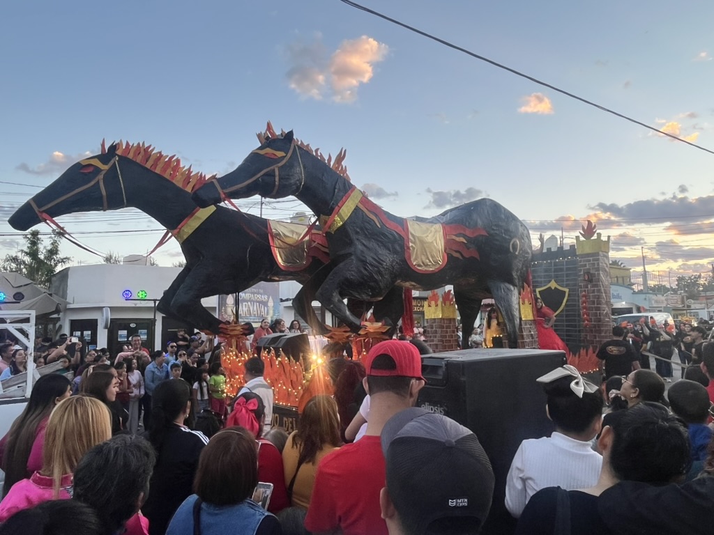 The festivities started with a samba group that performed in the middle of the street. Drum beats reverberating off the buildings, a feathered dancer strutting to the beat, a stilt walker with a tambourine, and an acrobat doing back flips. The parade continued, featuring brightly decorated floats and dance troupes all in the theme of the Chinese Year of the Fire Horse. It was a boisterous, colorful, and sometimes literally fiery, display.